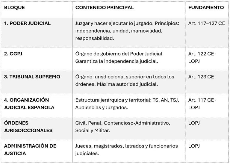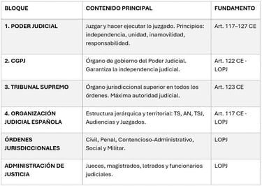 EL PODER JUDICIAL. EL CONSEJO GENERAL DEL PODER JUDICIAL. EL TRIBUNAL SUPREMO. LA ORGANIZACIÓN JUDICIAL ESPAÑOLA