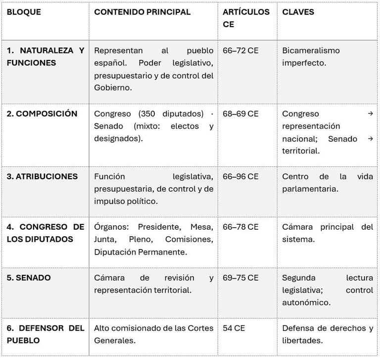 Las Cortes, en conjunto, son el eje institucional del Estado democrático, garantizando la soberanía nacional, la legalidad y el control del poder público.