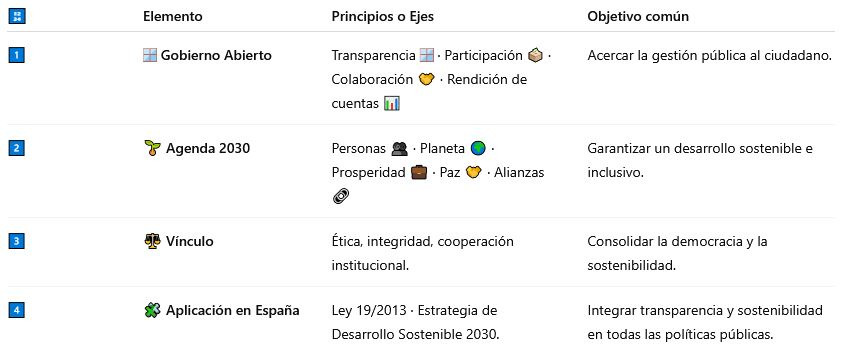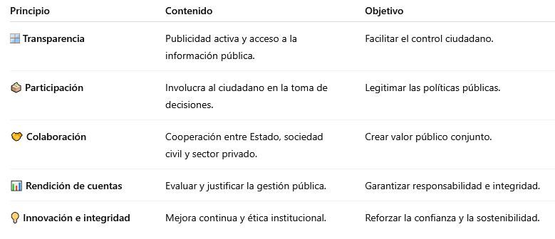 🪶 Relación directa con el Gobierno Abierto: ambos fomentan la transparencia, participación y responsabilidad institucional.