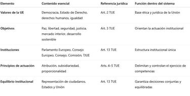 La UE tiene un marco institucional único (art. 13 TUE) que articula su funcionamiento.