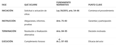 La Ley 39/2015 estructura el procedimiento en cuatro grandes fases, aunque cada una contiene trámites específicos.