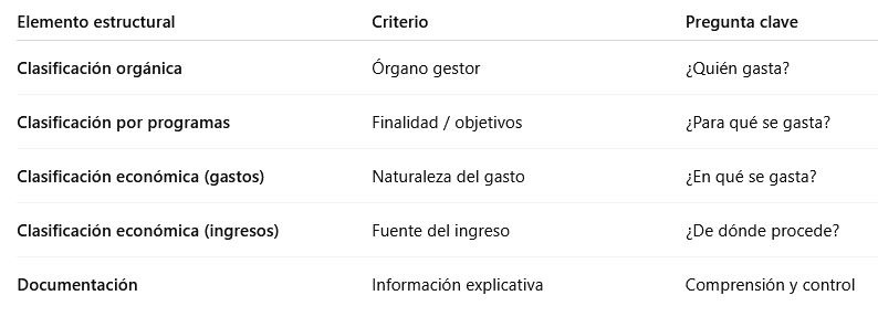 La estructura permite analizar el Presupuesto desde distintos enfoques y facilita su control 🔍.
