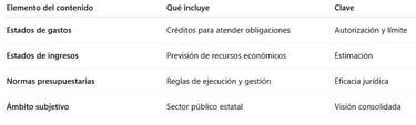 “Contenido del Presupuesto = qué entra + qué sale + cómo se gestiona.”