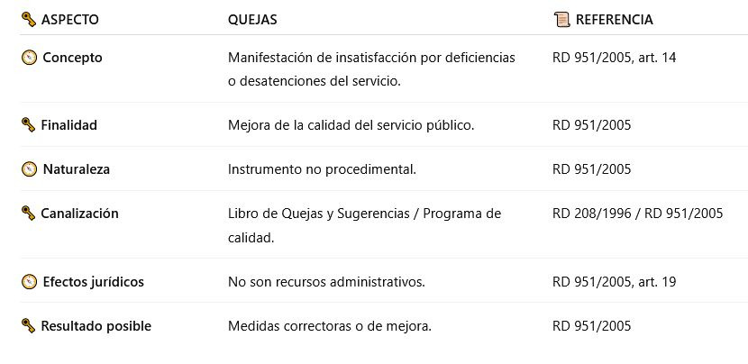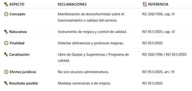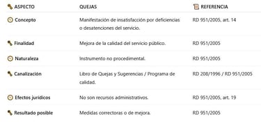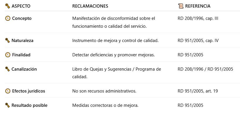🗝️ Iniciativas, reclamaciones y quejas → mejora de la calidad (RD 951/2005)
