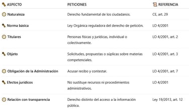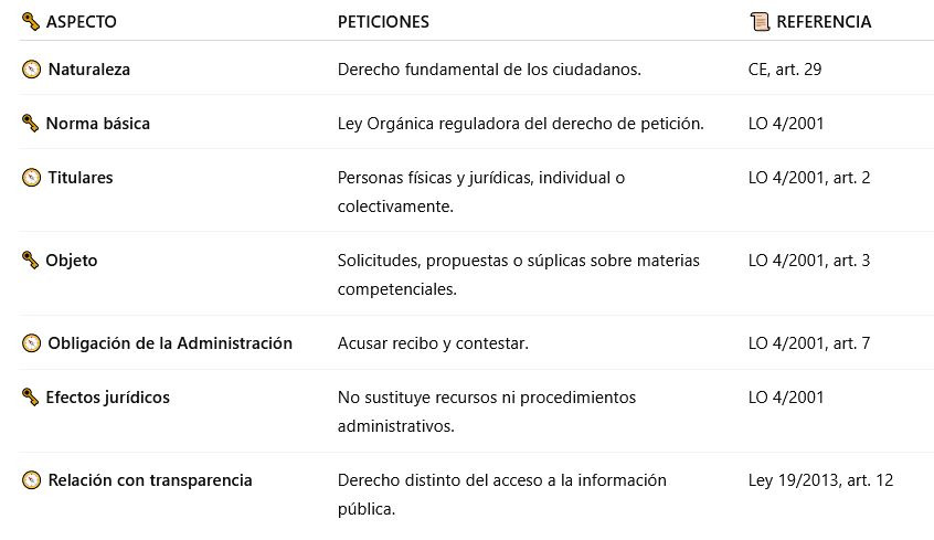 🗝️ El derecho de petición es derecho fundamental (art. 29 CE).