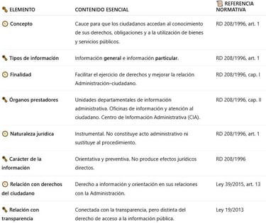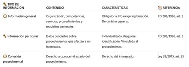 🗝️ El RD 208/1996 distingue dos tipos de información administrativa: