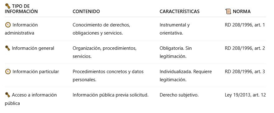 🗝️ La información administrativa constituye un servicio esencial al ciudadano, cuyo objeto es facilitar el conocimiento necesario para relacionarse correctamente con la Administración.