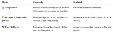 ⚙️ Su estructura es tripartita: Transparencia, Acceso y Buen Gobierno.