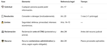 2️⃣ Acceso a la información pública → derecho de toda persona a solicitar y obtener datos sin necesidad de justificar interés personal.