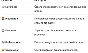 🏛️ Consejo de Transparencia y Buen Gobierno: órgano independiente garante del cumplimiento.