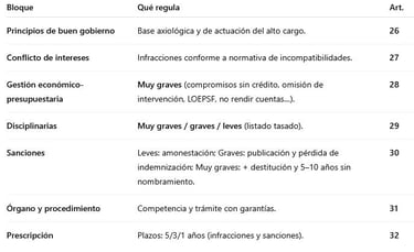 ⚖️Título III. Buen Gobierno (principios, infracciones y sanciones).Arts. 33-40.